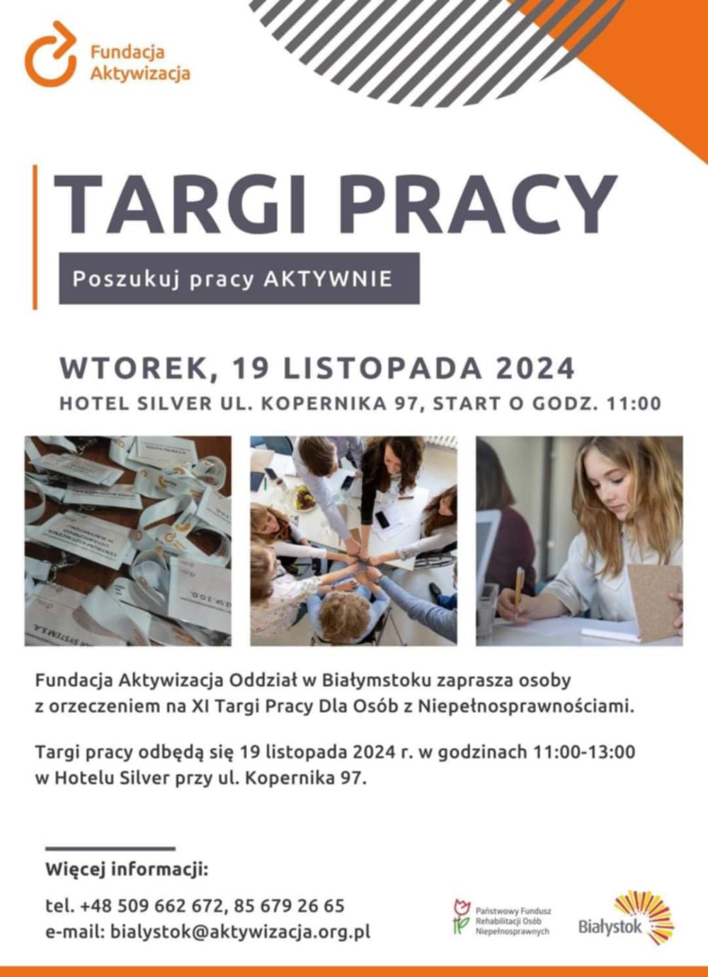 W targach uczestniczyło ok. 20 pracodawców i instytucji z regionu. Wśród wystawców znalazły się instytucje i firmy z regionu (ZUS, Powiatowy Urząd Pracy w Białymstoku, Wojewódzki Urząd Pracy w Białymstoku, Fundacja Aktywizacja, Stowarzyszenie Bliżej Siebie Białystok-Eindhoven, Przedsiębiorstwo Społeczne Sklep pod Wiatrakiem, Firma ZIIPE PV Sp. z o.o., Poczta Polska, SOW system obsługi wsparcia, Państwowa Inspekcja Pracy, Witraż, LEROY MERLIN, CLAR System, ATS Południe, Podlaska OHP, Państwowy Fundusz Rehabilitacji Osób Niepełnosprawnych).