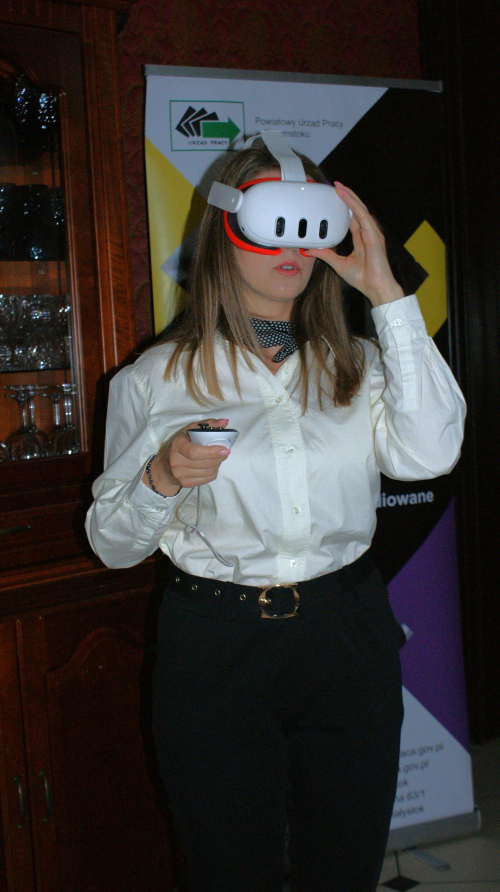 Czy można „zobaczyć”, jak będzie wyglądała wymarzona praca? W dalszej części spotkania na to pytanie starały się odpowiedzieć przedstawicielki Powiatowego Urzędu Pracy w Białymstoku Ewelina Pytel i Joanna Kubarska, prezentując możliwości, jakie dają gogle VR w doradztwie zawodowym. Uczniowie najpierw poznają aktualne trendy i prognozy na rynku pracy. Gogle VR, podczas realistycznej symulacji w technologii wirtualnej rzeczywistości, pomagają uczniom w podjęciu decyzji dotyczącej kształcenia, a co za tym idzie – przyszłego zawodu. Uczestnicy seminarium mieli również okazję do przetestowania urządzenia na własnej osobie.